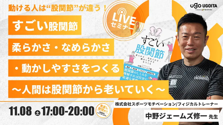 11.08【中野ジェームズ修一先生】すごい股関節 柔らかさ・なめらかさ・動かしやすさをつくる 〜人間は股関節から老いていく〜(LIVEセミナー/ZOOM)