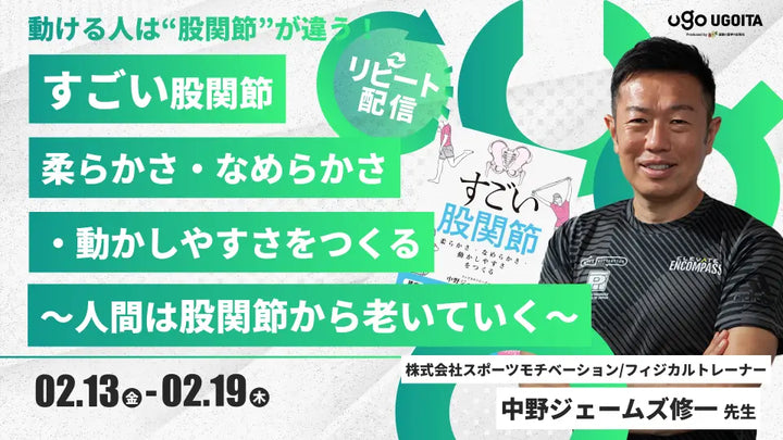 02.13【中野ジェームズ修一先生】すごい股関節 柔らかさ・なめらかさ・動かしやすさをつくる 〜人間は股関節から老いていく〜(リピート配信)