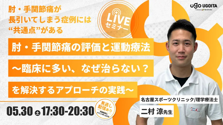 05.30 【二村涼先生】肘・手関節痛の評価と運動療法〜臨床に多い、なぜ治らない?を解決するアプローチの実践~(LIVEセミナー/ZOOM)